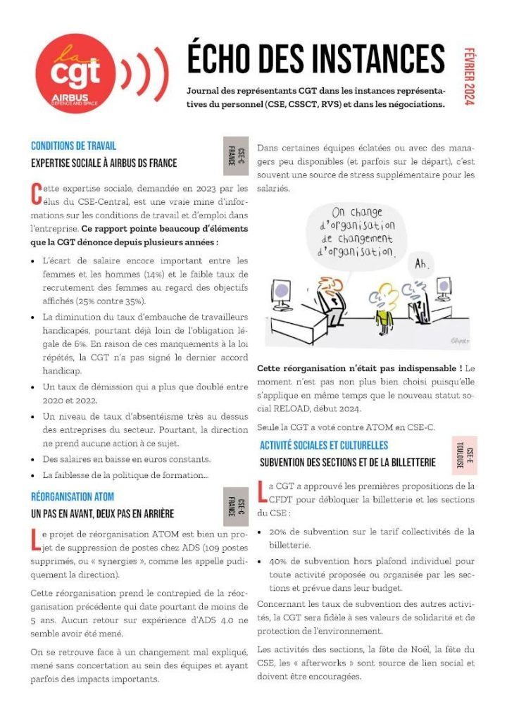 Journal des représentants CGT dans les instances représentatives du personnel (CSE, CSSCT, RVS) et dans les négociations.